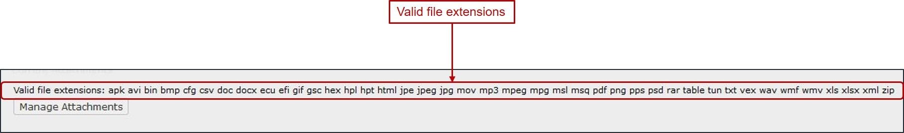 Images/Attachments/Files must be one of the file extensions identified below.
