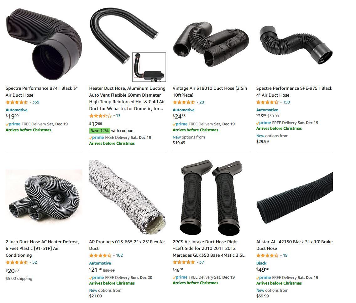 I've also used "emission hose" as ductwork. It's meant to be used under the hood connected to the air cleaner, but it works just fine as heater/AC duct hose as well. It's flexible, comes in different diameters, is easy to cut to length, and it's made of metal, so it'll last forever. All of this ductwork is hidden under the dash. It's not visible, so what does it matter if it's not 100% original if it works?