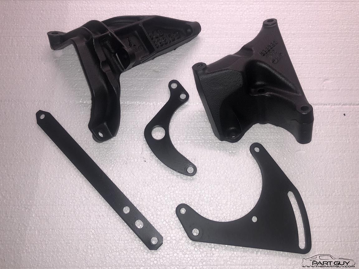Hey guys I got my car with an aftermarket sanden compressor and I took that off awhile ago when i started to restore the entire a/c system. Now that Im at the end i need to install my new Pro6ten Compressor, So im looking for original brackets that this engine came with. If you guys can post a nice picture of what the setup looks like that will be great. I have a lot of parts for buick and olds and I need to see which one is correct. I have the bottom bracket, the c shaped bracket and the long bent bracket. Thanks.