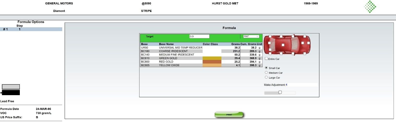 Dupont formulation for the 69 Firefrost gold for a PINT:Cost code from DuPont: (important) F