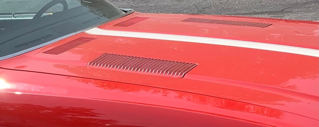 Wondering what the correct way the 72 Hood Louvers were factory painted. I know the S model was body matched and the 442 model was black. In the photo does the end(A) and backside(B) of the louvers get paint or stay chrome?