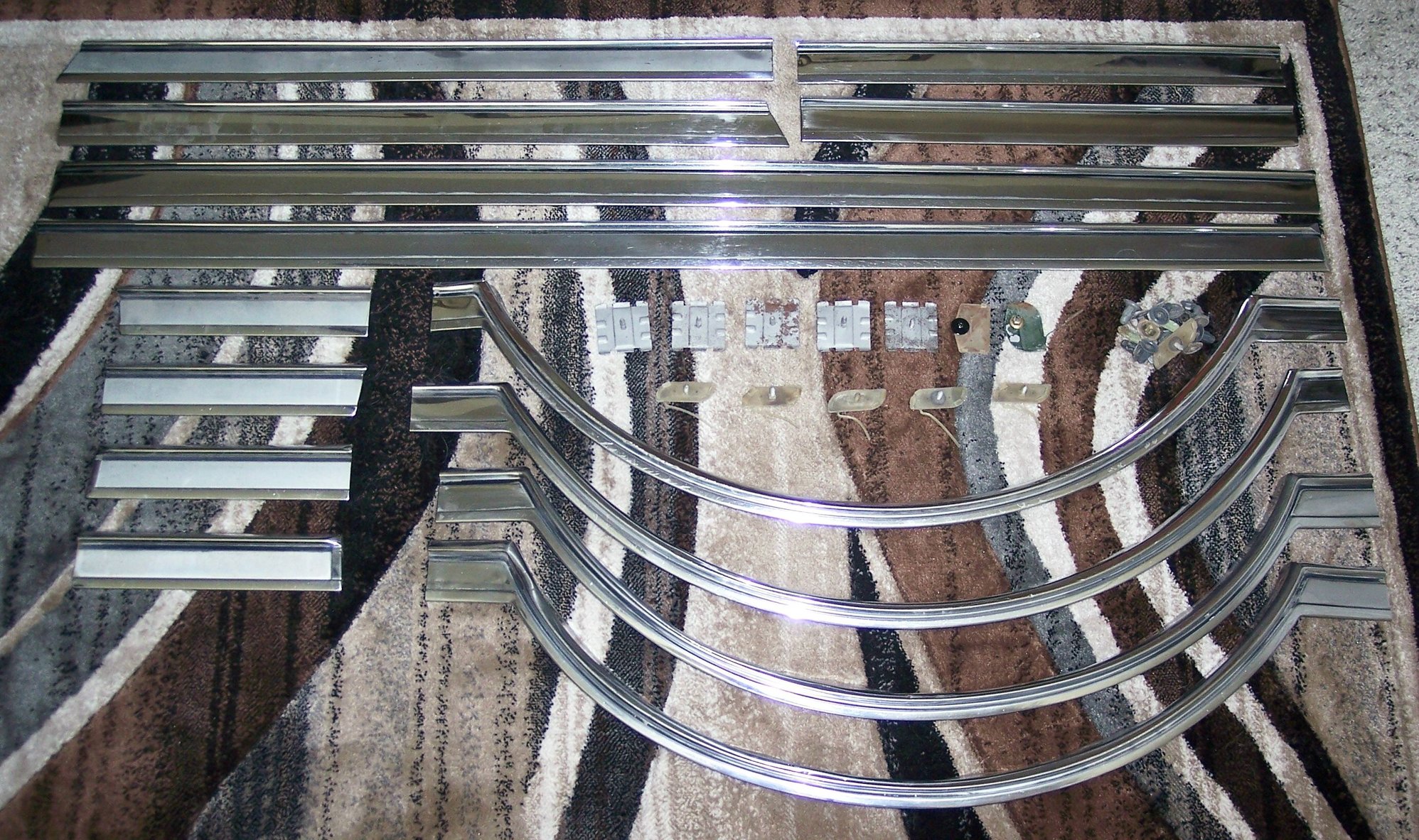 I have a complete set of side trim for a 1966 442 Holiday 2 Dr. HT. All but one section (P/S Wheel Arch) are in very good to excellent condition, with normal scrapes and a few small dents, and that one wheel arch is driver quality. IMO all of the pieces can easily be restored to top quality (the wheel arch will take some work) Some of the pieces have the argent color already polished off. In addition to the full set, I have 8 extra smaller pieces I will throw in, plus all of my extra trim clips. Please send me a PM if you would like more info or pics. $450.00 shipped conus.