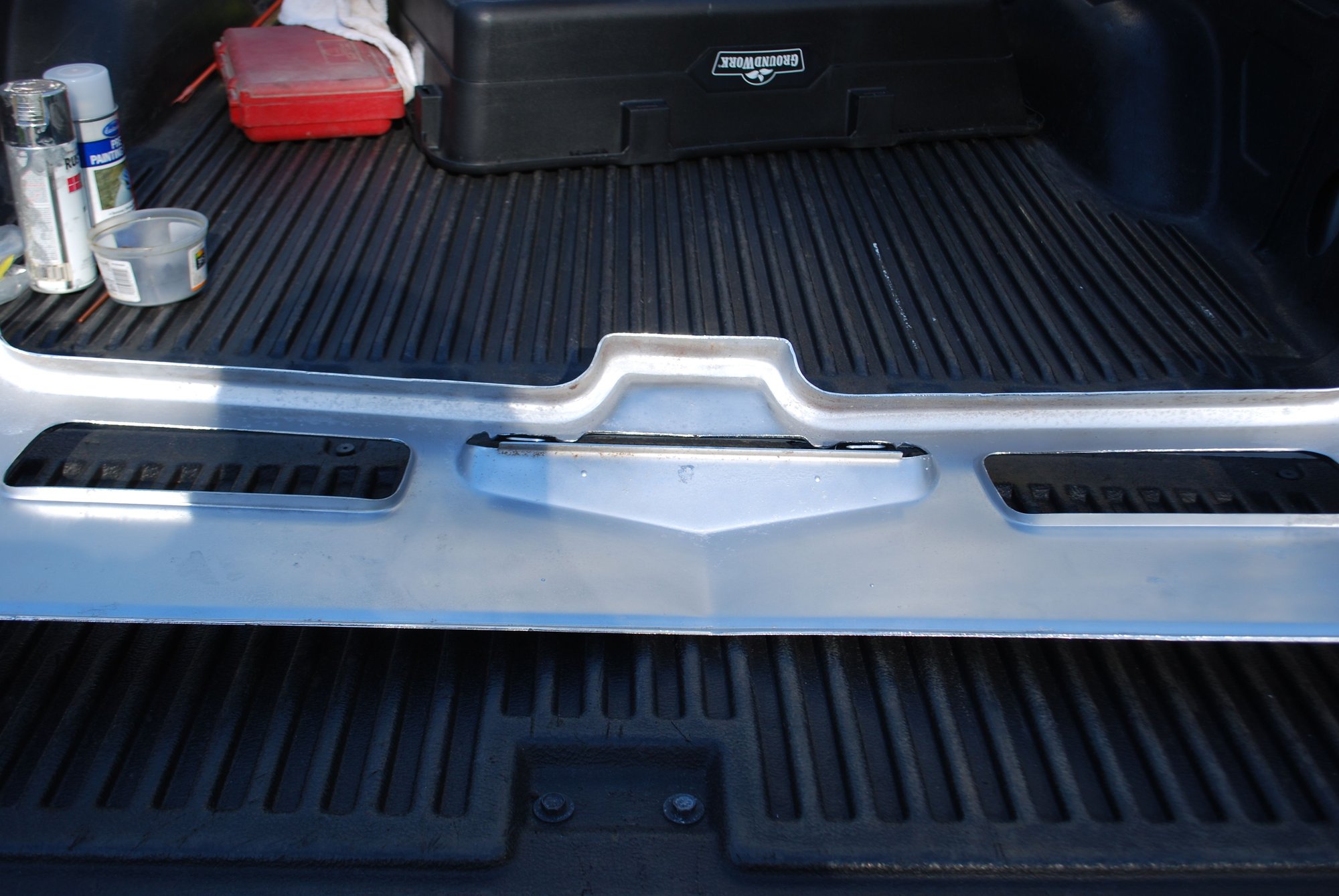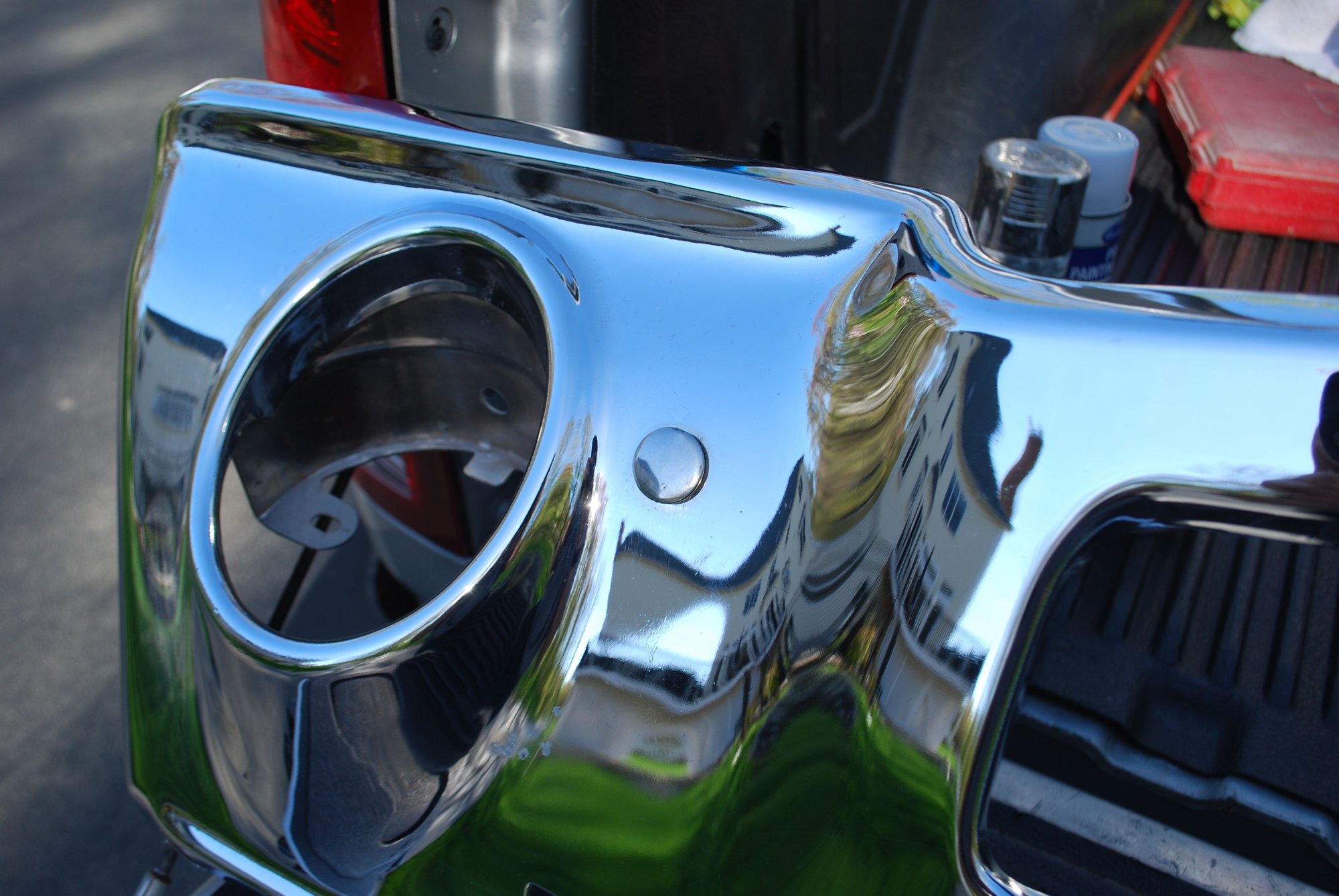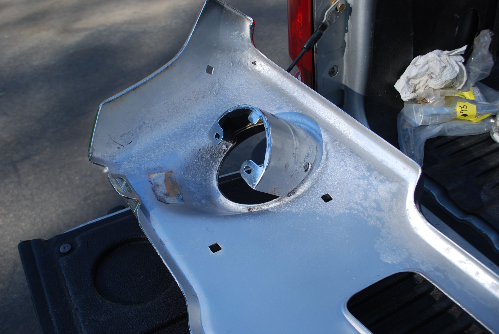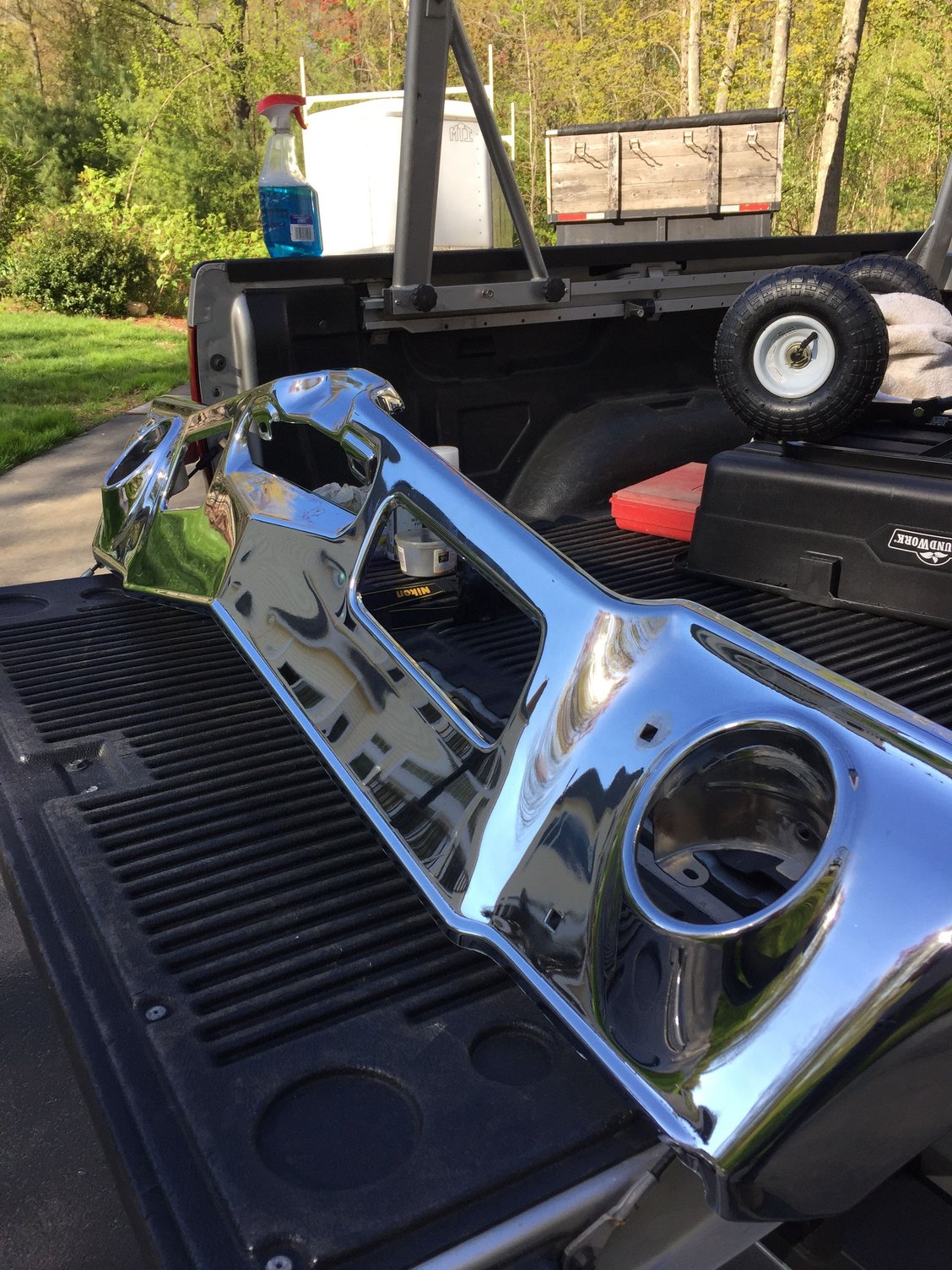 NOS front bumper with minor imperfections but legit NOS piece. A few small pits on lower portion and around two bolt holes. One bolt hole is covered with bolt head and the other shows minimum. Surface rust started underside and was painted over. A great driver bumper or even for rechrome. Never been mounted. $400 plus shipping.