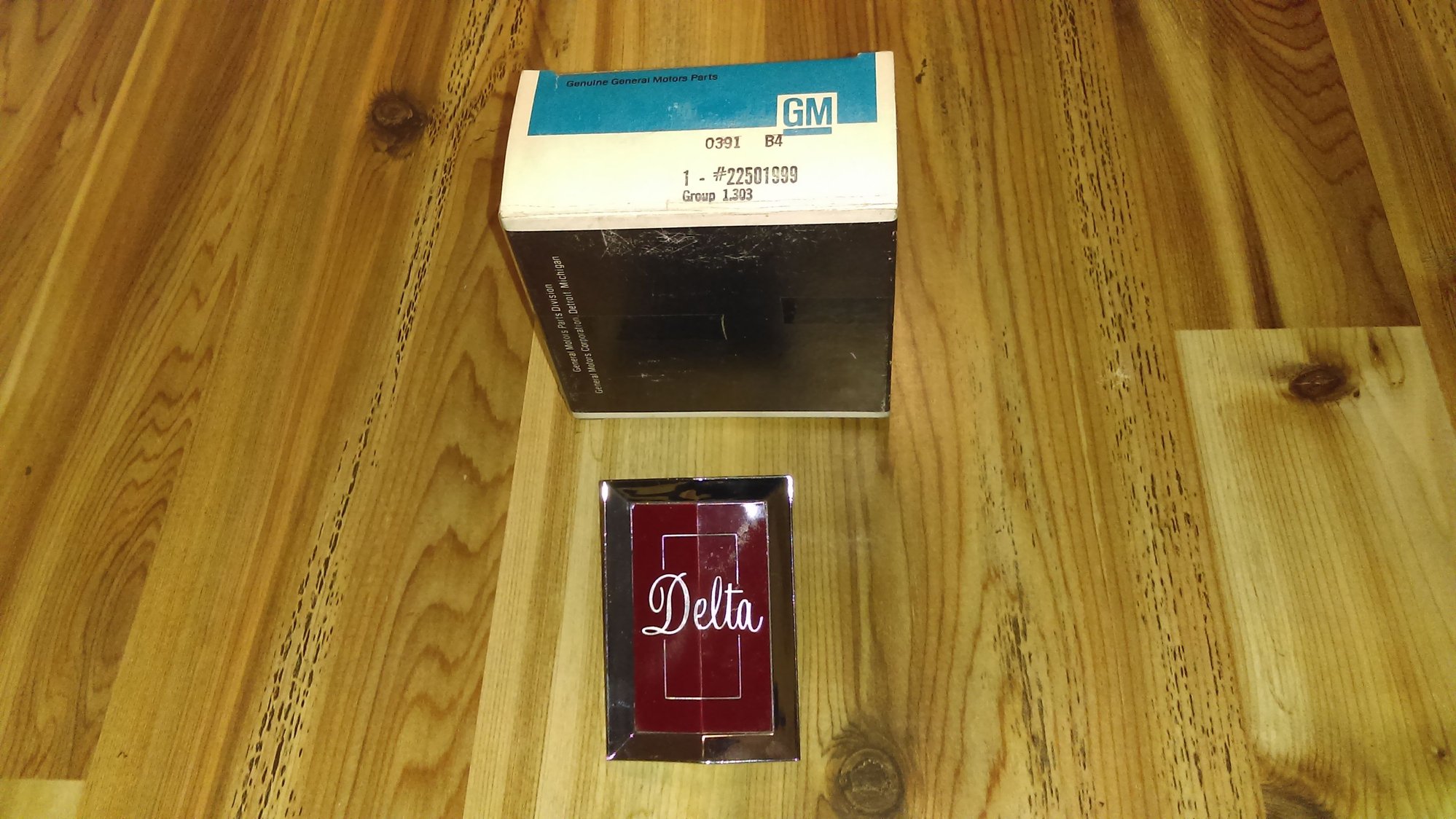 1980/81 Delta Header Emblem - NOS This NOS "Delta" header emblem is correct for 1980 & 81 only... However, it does appear that it can be used on 82 thru 90 to replace the "Rocket" emblem if someone chooses to be a little different... Very nice condition... $60 PLUS S/H/I . I do not use PayPal, US shipping only, and preferred payment is USPS money order...