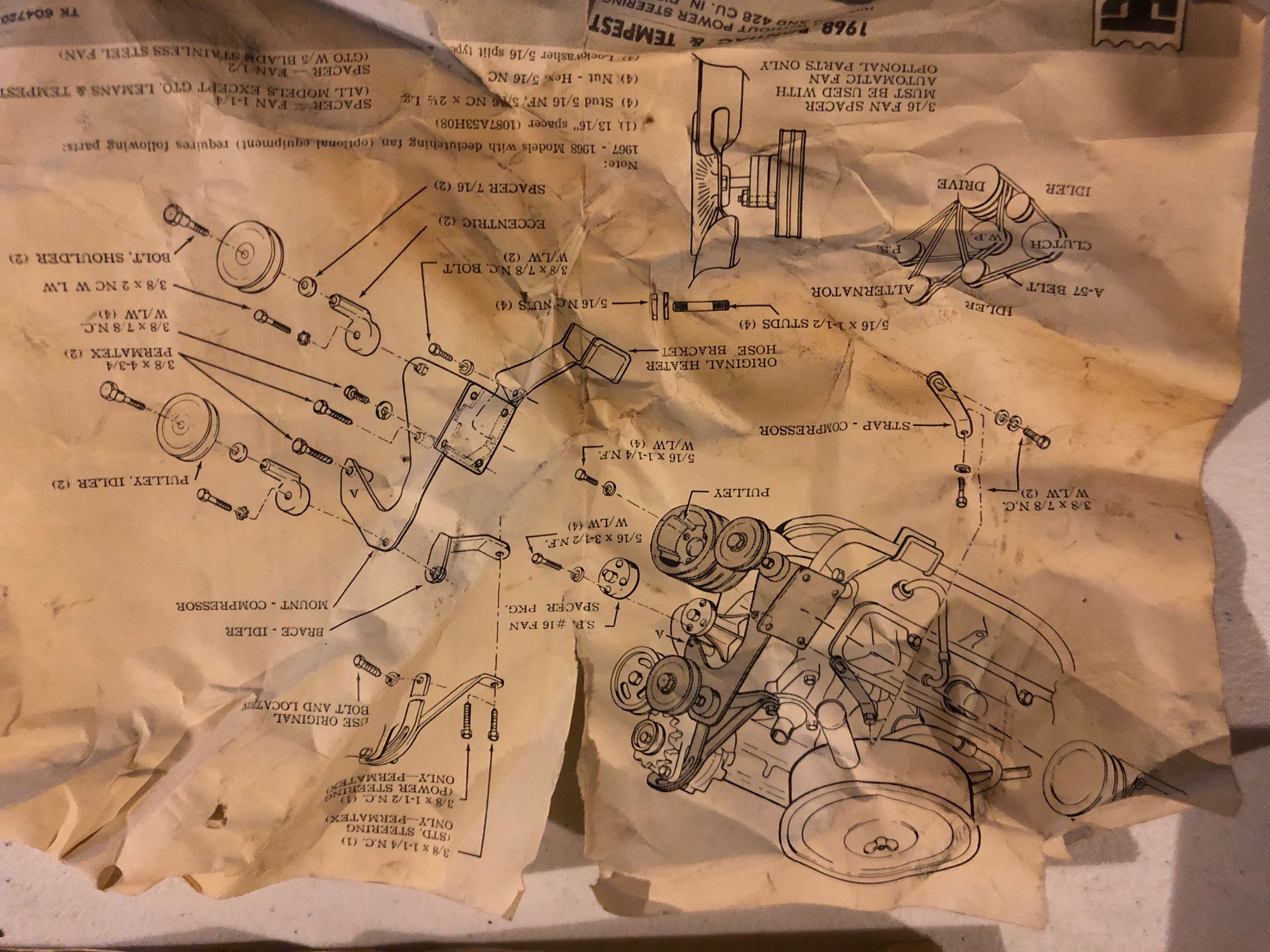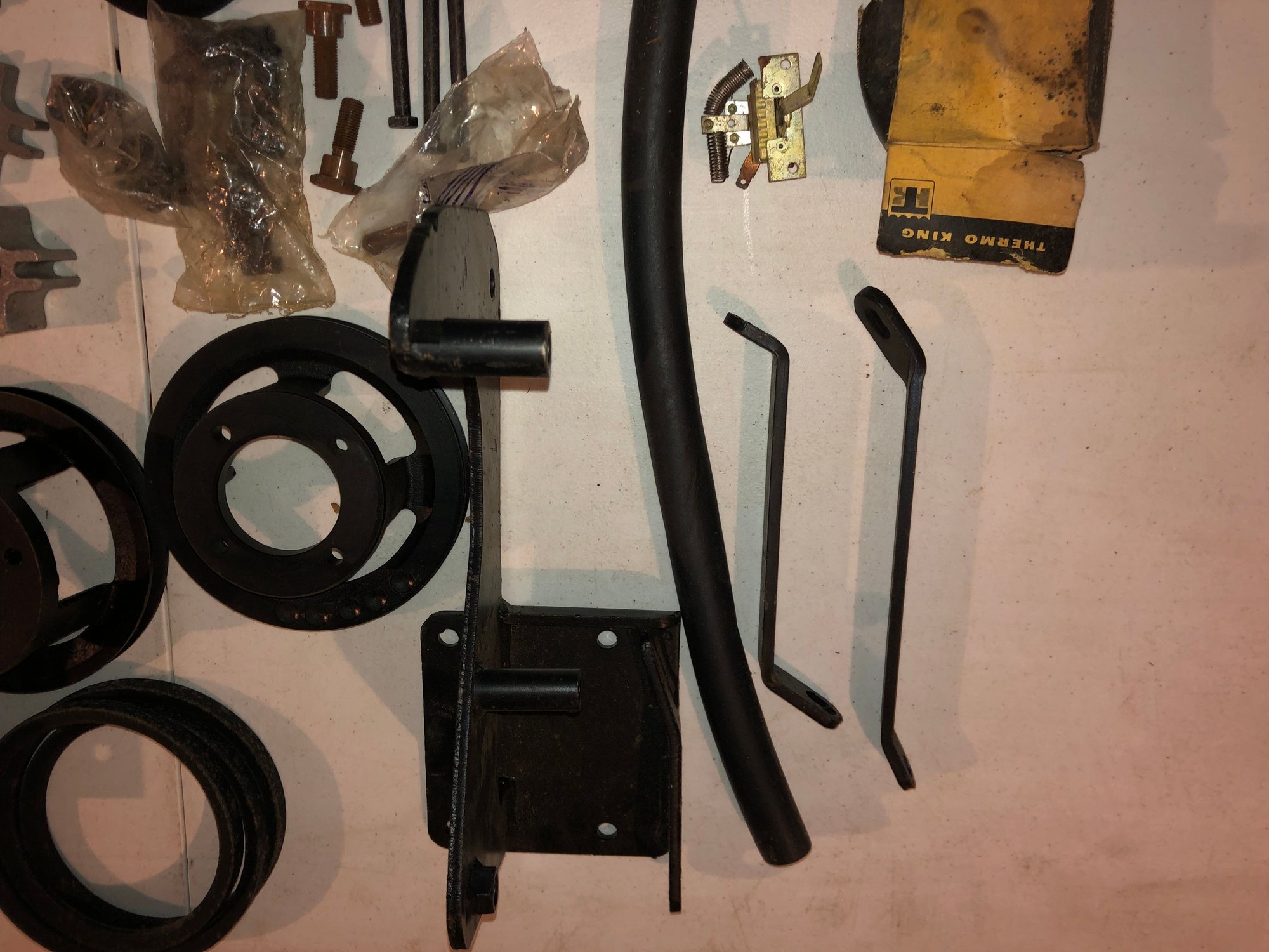 Not sure if anybody wants this. ThermoKing aftermarket AC unit with brackets, hardware, belt, pulleys, spacers, dash switch and various parts for 1964-67 f85 and 1968 Pontiac Tempest. No compressor. What’s in the photos is what’s in the box. Can bring to homecoming or nationals. $250. dead@mchsi.com