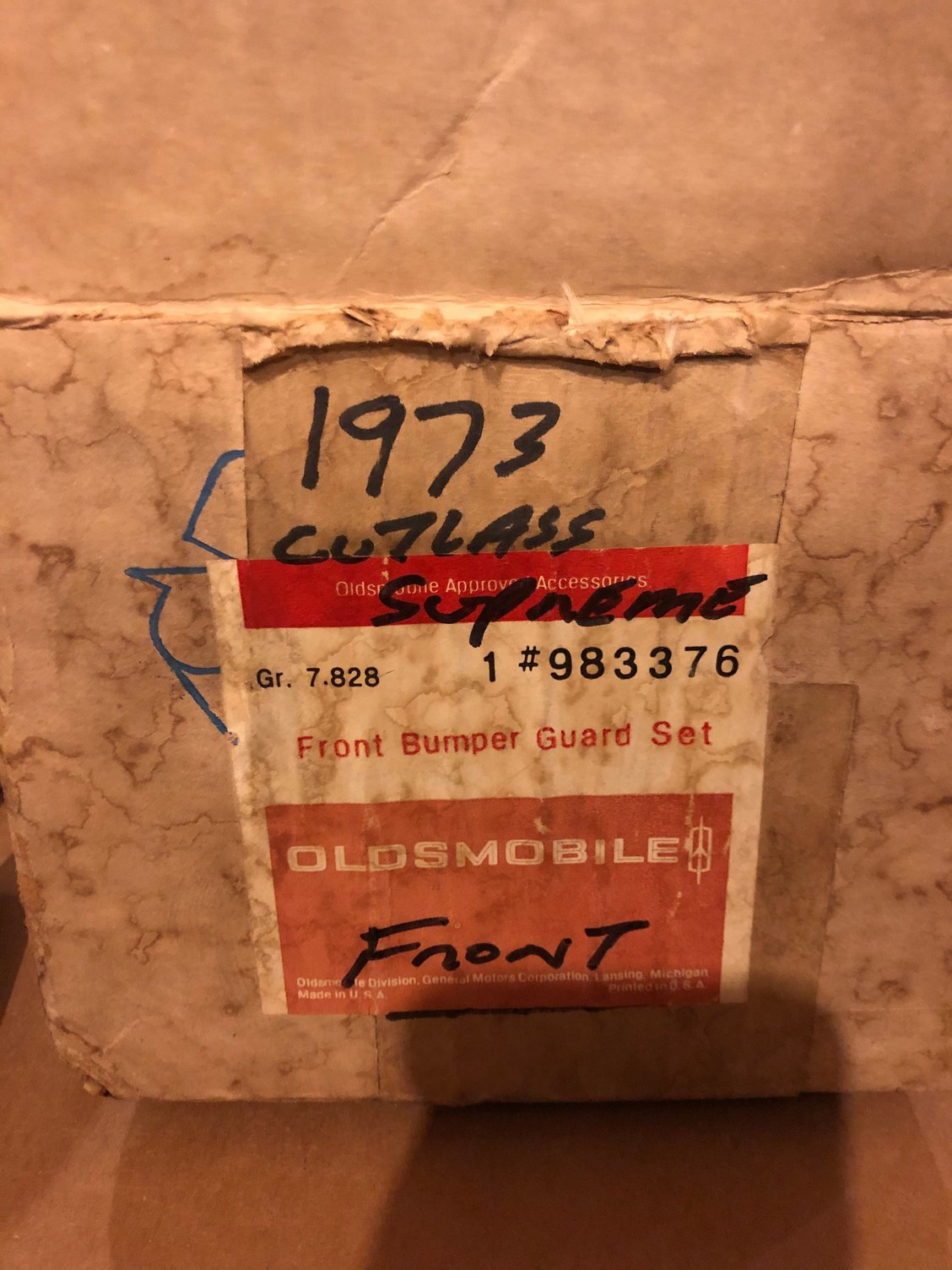 Part #983376 is a set of front bumper guards for the Cutlass Supreme. Excellent condition chrome and rubber strips. All the hardware and instructions included. In the GM box. $125 shipped.