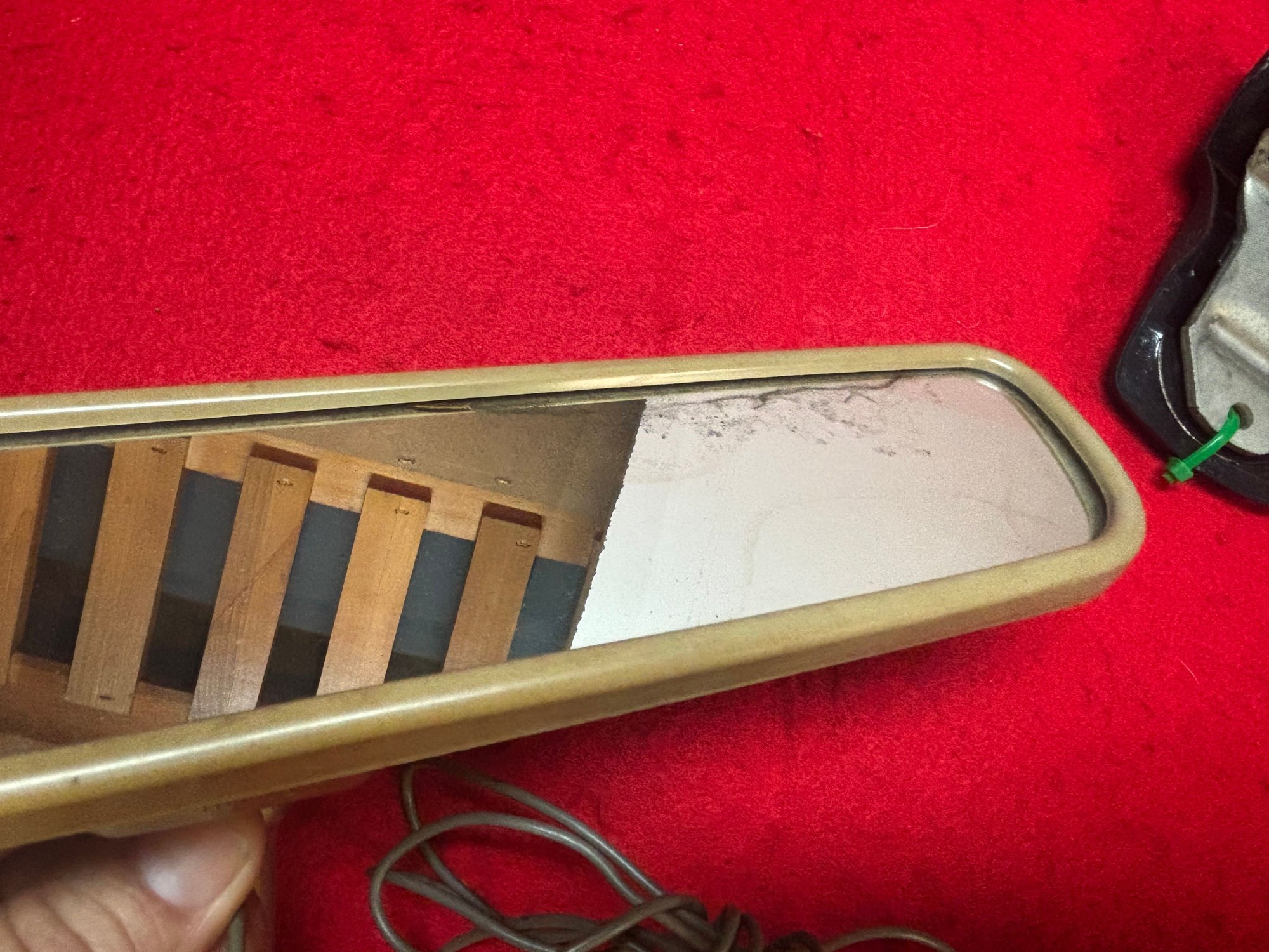 I have this unmolested example available if you can't find another that meets your criteria. Tested and works. Mirror itself has some issues around the edges but nothing excessive. Free vintage AAA sticker included. $75 shipped.
