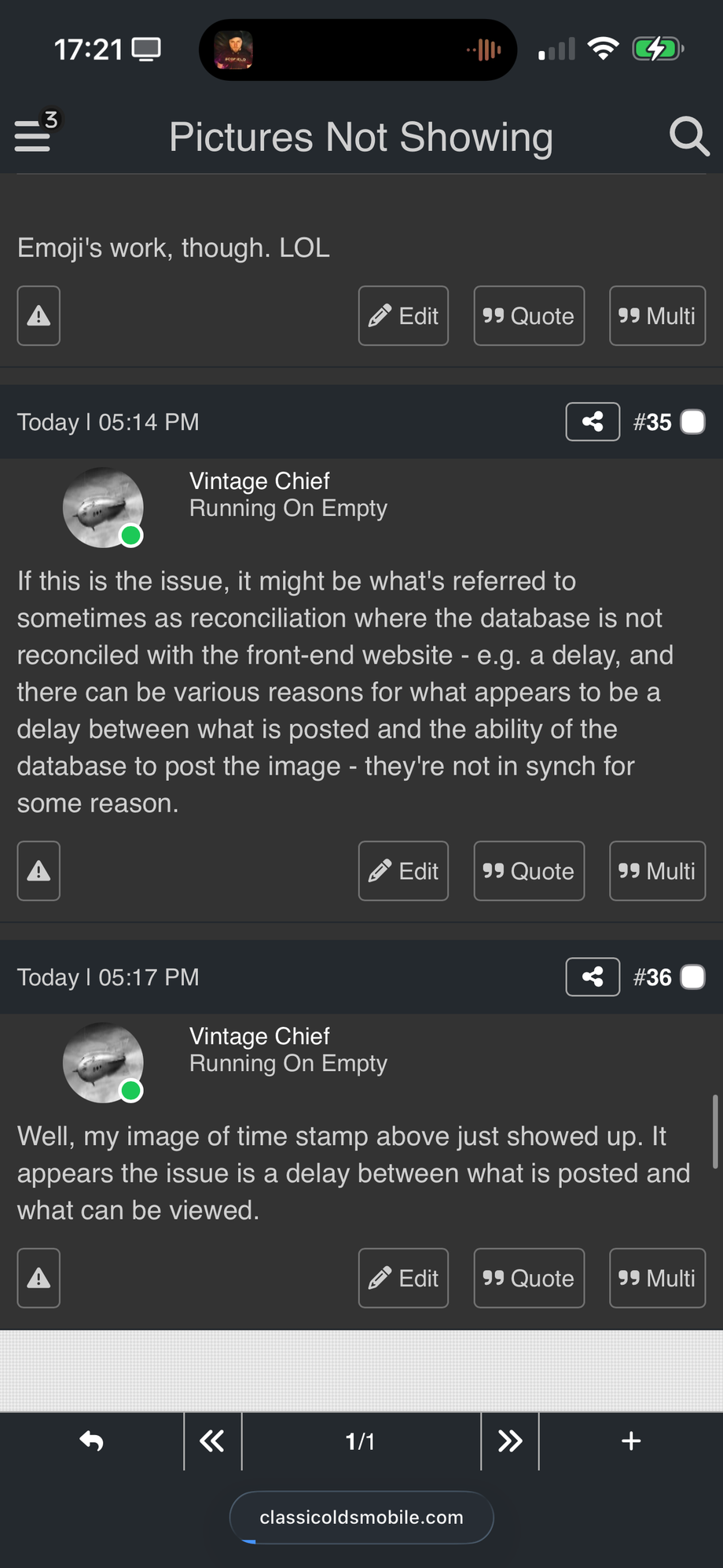 I'm having trouble inserting a picture(s) in a post. I up load a picture and it shows it loaded in the text window but when I post it the picture does not show. Any help would be appreciated.