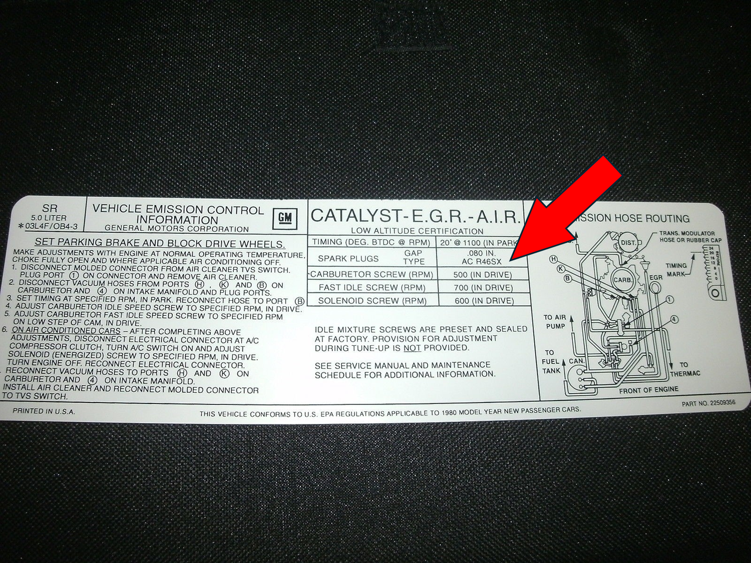 You probably want R46SZ (GM p/n 5613882), which is the substitute GM recommended for the R46SX (GM p/n 5613881) circa 1986. The SX comes preset with an 0.080" gap, while the SZ comes with an 0.060" gap. This was due to the wide gap putting too much strain on the ignition module and causing early failures that GM had to fix under warranty. Shortening the gap seemed to fix the issue and still not hurt the performance.