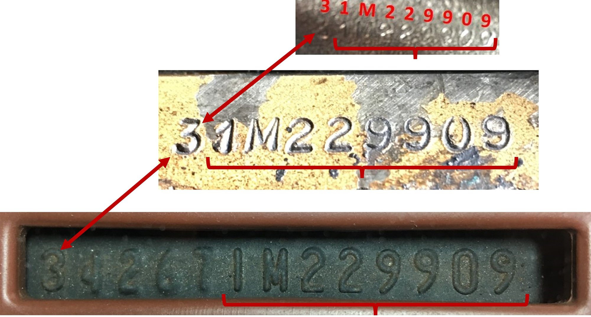 What is the number on the VIN plate located on the driver side (LH-side) of dashboard behind windshield? Post a picture of the VIN. I'm assuming the image you posted is the VIN derivative located on the block of the engine? The number '6' indicates Cadillac division which if correct would suggest it's a converted 350 diesel or gas engine, I think - not sure. Cadillac Sevilles used the Oldsmobile 350 I think. Post a picture of your VIN plate let's see what the leading number is on the VIN plate. Good chance the VIN derivative and the VIN plate number are not going to match on this car. The first image below is the transmission VIN derivative, the second image is the block VIN derivative, the third image is the VIN plate number. Notice the number '3' should align.
