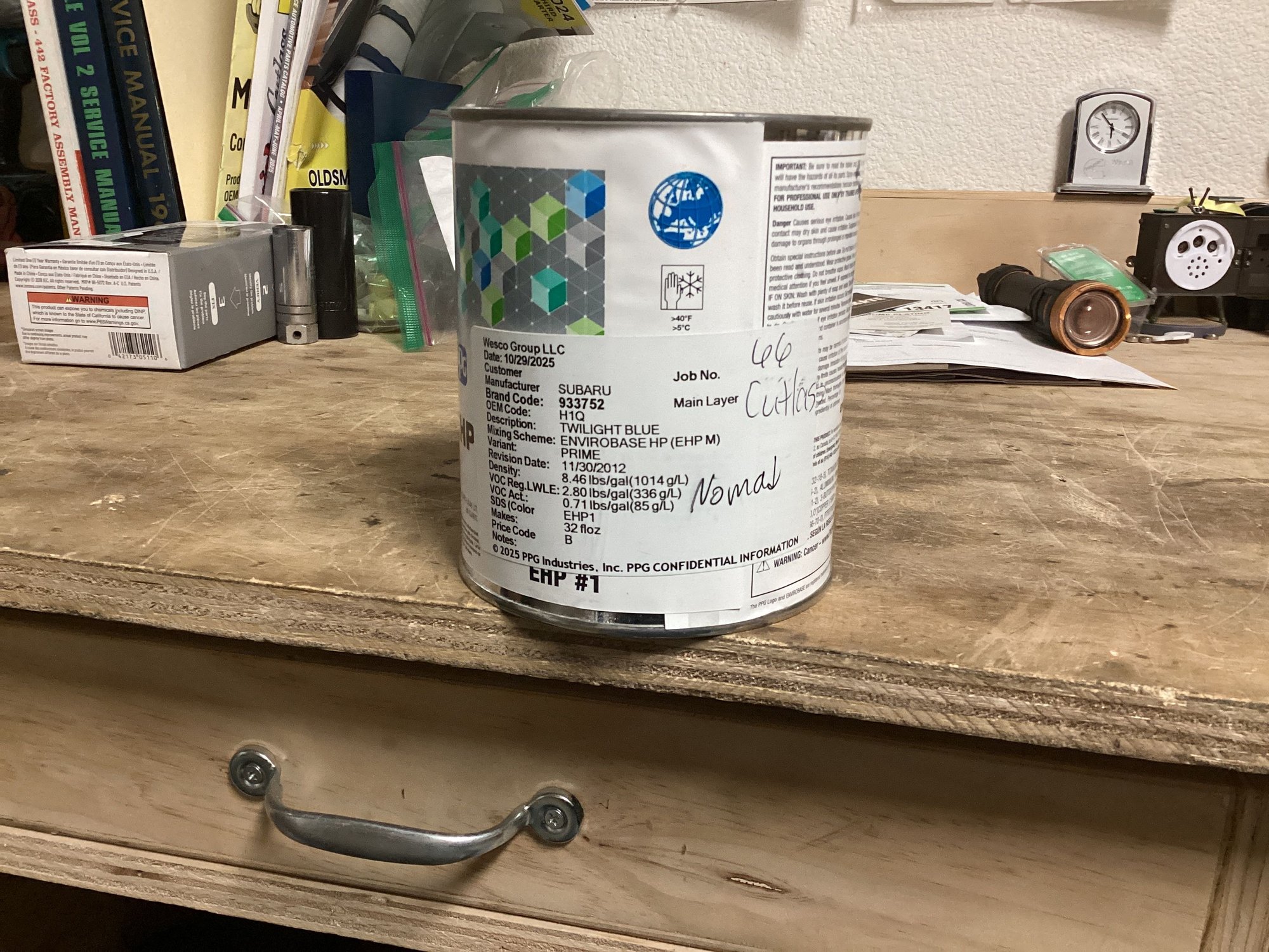 Russ, here’s a pic of the leftover paint from my body shop………looking at it, says it’s a Subaru color……hmmm!