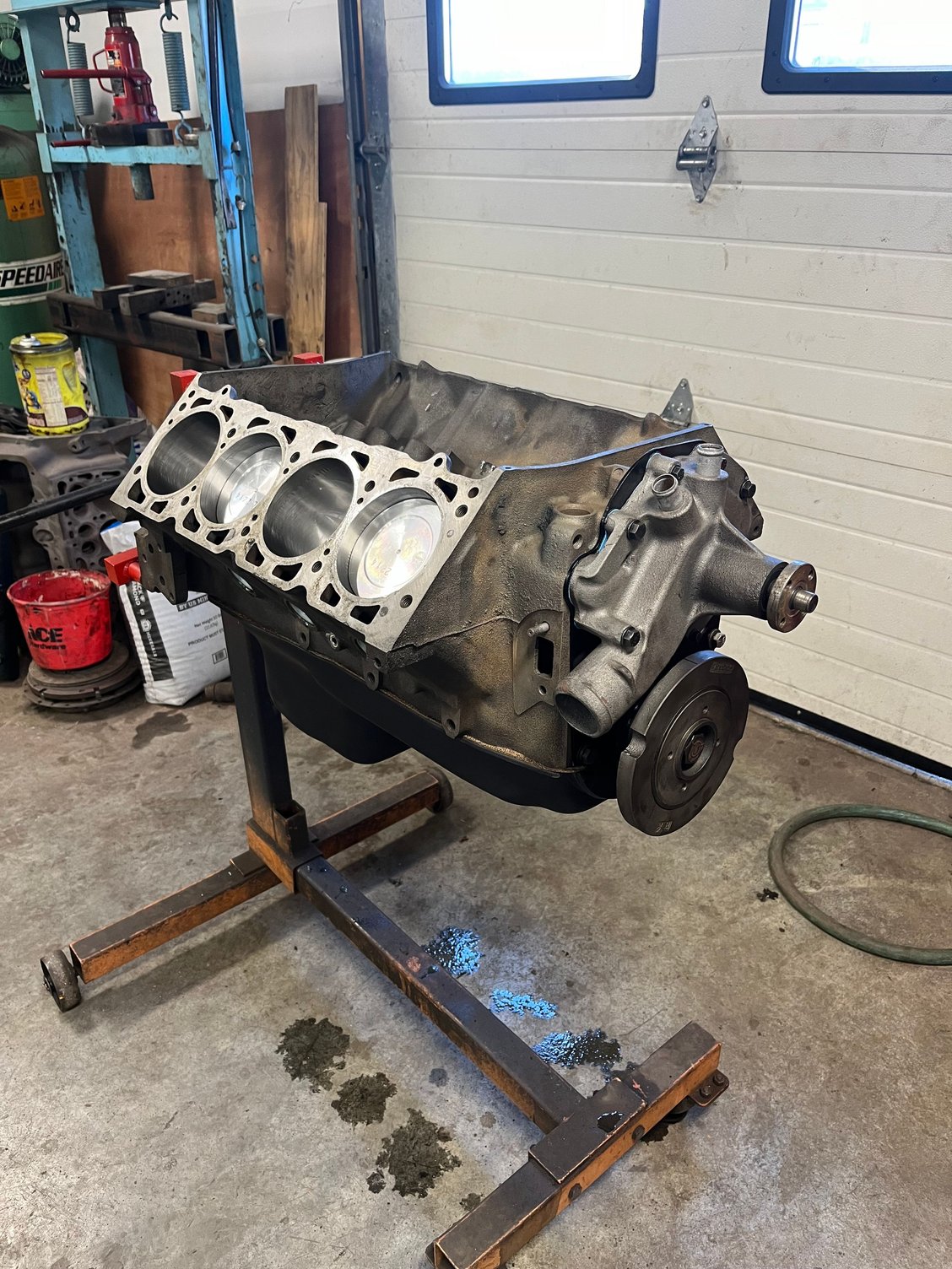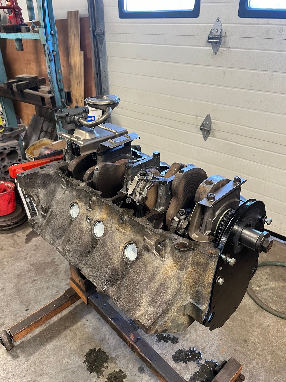 66 425. I bored it 030 with egge hole fillers. 10/10 crank balanced assy. New m22 and camcrafters stock regrind on cam. Rod big ends specd in limits so no work needed on those. Working on the heads