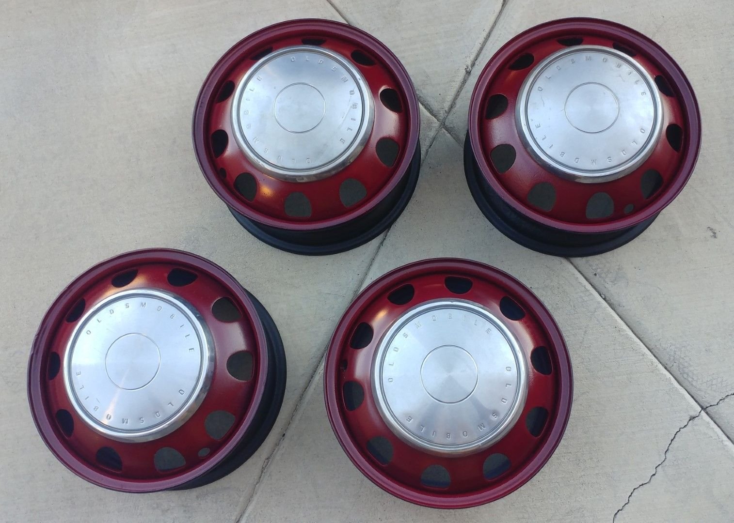Ah, 1967 had the optional disc brakes. Maybe that's why the wheels don't have that space near the edge. But these chrome rims did fit on your 1977 disc brakes, correct? So maybe the chrome rims you painted burgundy are from a 1967?