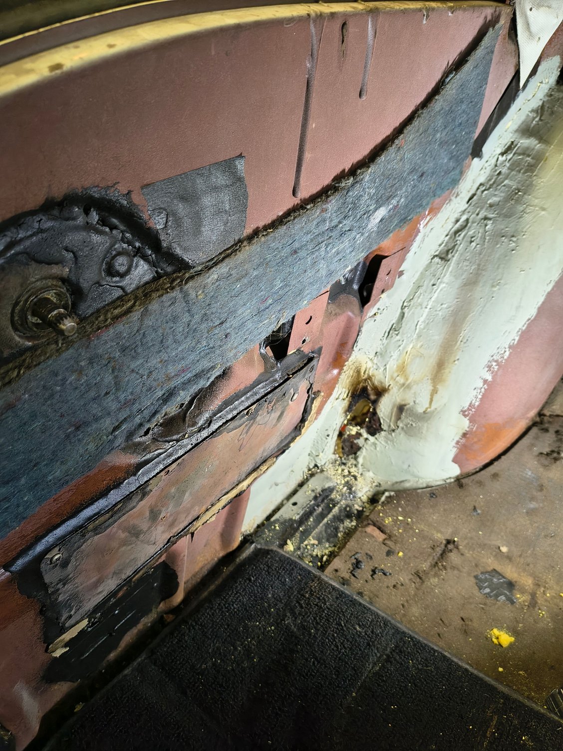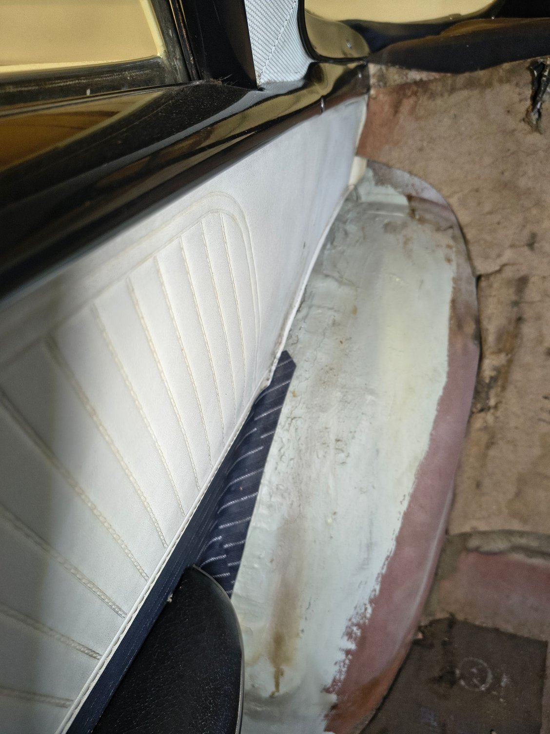 Good morning, I am in the process of prepping for some sheet metal repair. In doing so I removed the inner door panel. There are missing clips and no surprise the outer edges of the door panel are somewhat deteriorated. I am looking for any suggestions on how to repair or strengthen these areas. Also I've attached photos of the inside of the door panel, two of the clips and two of the passenger rear wheel well area that has some needed rust repair. In this area I am trying to understand if the uneven area along the outside edges of the wheel well is original or if it has been 'mudded' over. Any thoughts are welcome. Thanks, David