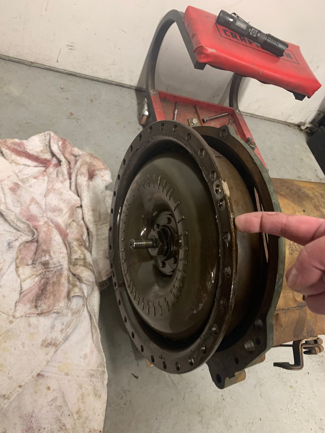 Can’t determine where it’s coming from - almost looks like the gasket between the flywheel and crank? It’s wet and the rear main is NOT leaking - I watched it run with a light for a while from both sides and not a drip.