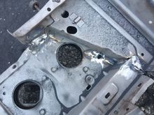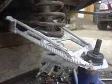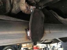 Customer exhaust hanger welded to the rear toe cam bolt
